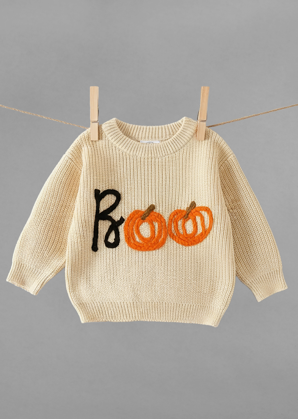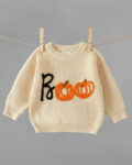 Χειροποίητο πλεκτό πουλόβερ από 100% οργανικό βαμβάκι σε μπεζ απόχρωση, με παιχνιδιάρικο κέντημα boo. Κατασκευασμένο από εξαιρετικά απαλό, αναπνεύσιμο νήμα, είναι φιλικό προς το ευαίσθητο παιδικό δέρμα και προσφέρει άνεση όλη μέρα. Το χαριτωμένο σχέδιο boo χαρίζει μια γιορτινή πινελιά, κάνοντάς το ιδανικό για cozy φθινοπωρινές μέρες με Halloween διάθεση.