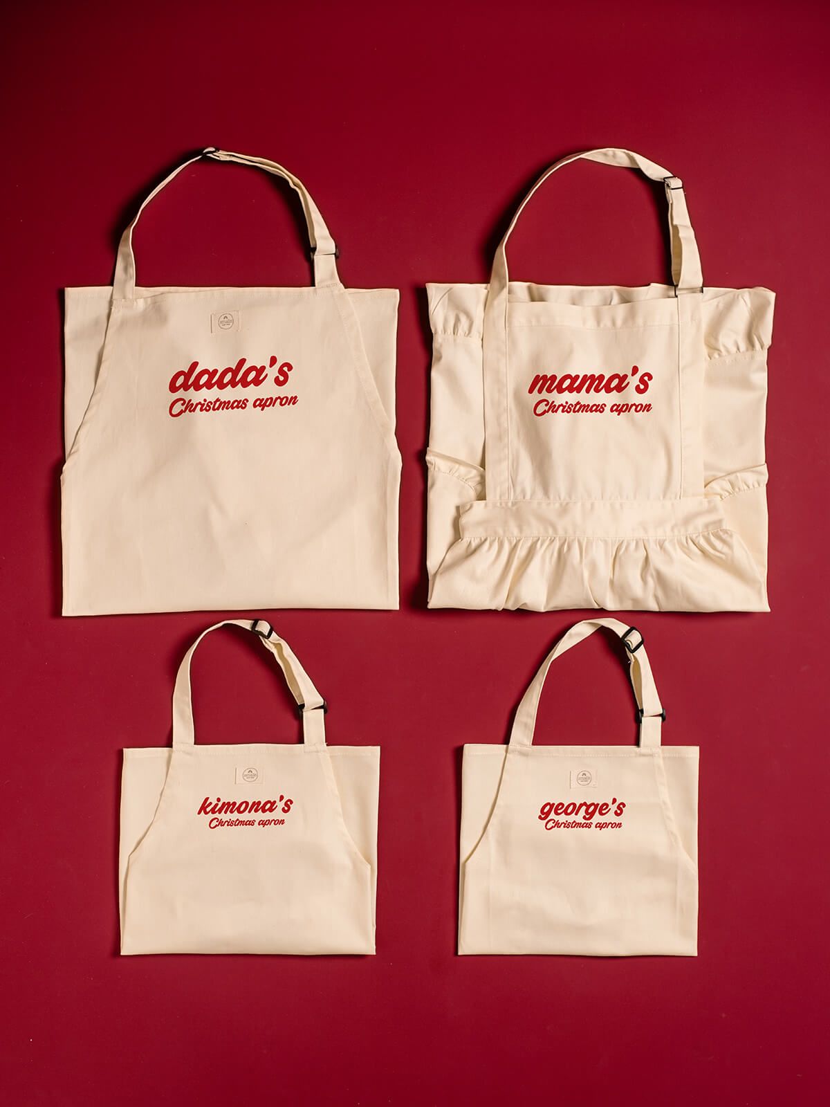 Χριστουγεννιάτικες ποδιές μαγειρικής για όλη την οικογένεια, από τη limited edition συλλογή, smalls, merry + bright.