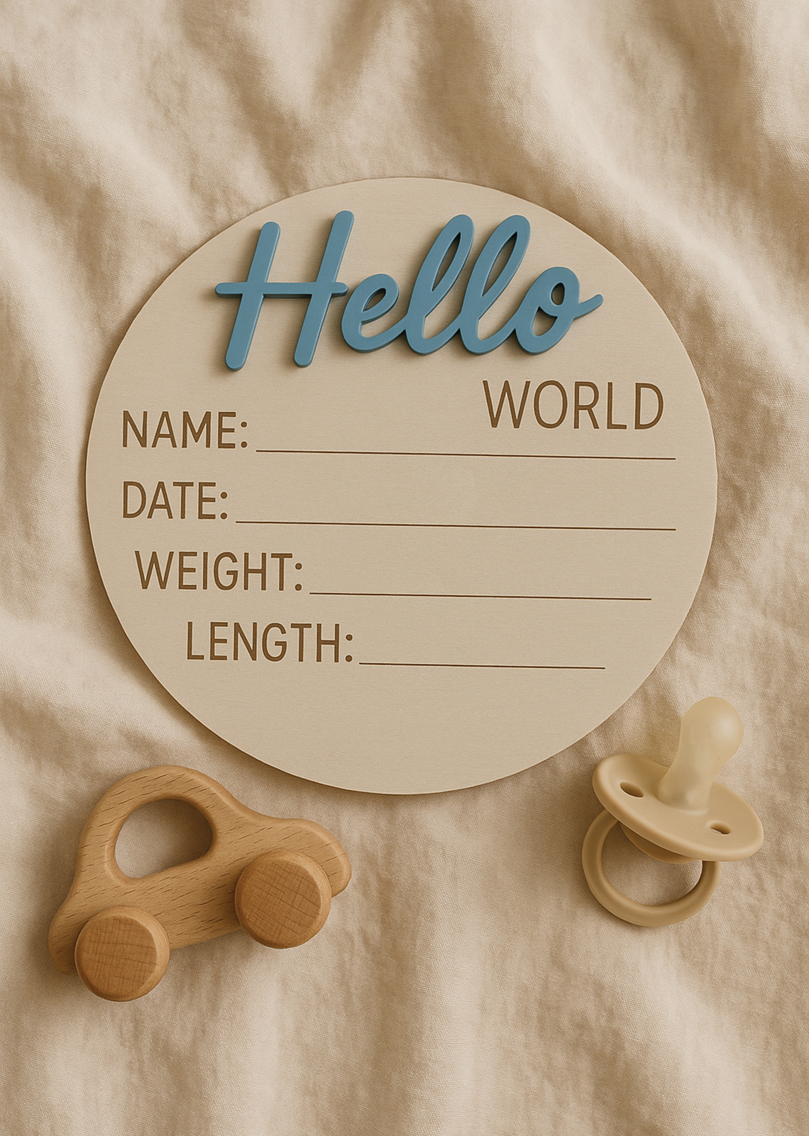 Ξύλινο αναμνηστικό γέννησης για να κρατήσετε ανεξίτηλες τις αναμνήσεις από την πιο μαγική στιγμή της ζωής σας. Ιδανικό δώρο για τους νέους γονείς.