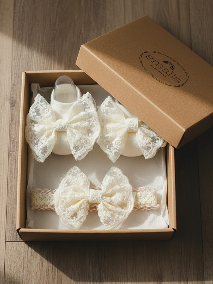 Σετ δώρου για το νεογέννητο μωράκι με πλεκτό σκουφάκι και παπουτσάκια από εξαιρετικά απαλό, 100% οργανικό βαμβακερό νήμα βιολογικής γεωργίας στο χρώμα της πούδρας. Απαραίτητο σετ για το νεογέννητο βρέφος και ιδανικό δώρο για τους νέους γονείς.