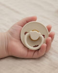 Κατασκευασμένη από φυσικό καουτσούκ υψηλής ποιότητας, η πιπίλα είναι απαλλαγμένη από BPA, PVC και φθαλικές ενώσεις. Η στρογγυλή, ελαφριά ασπίδα καμπυλώνει μακριά από το προσωπάκι του μωρού, εξασφαλίζοντας σωστή κυκλοφορία αέρα και μειώνοντας τον κίνδυνο ερεθισμών. Κατάλληλη από τη γέννηση.